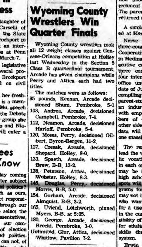 John Peterson (Attica) > Terry Webster (Holley) decision 9-3