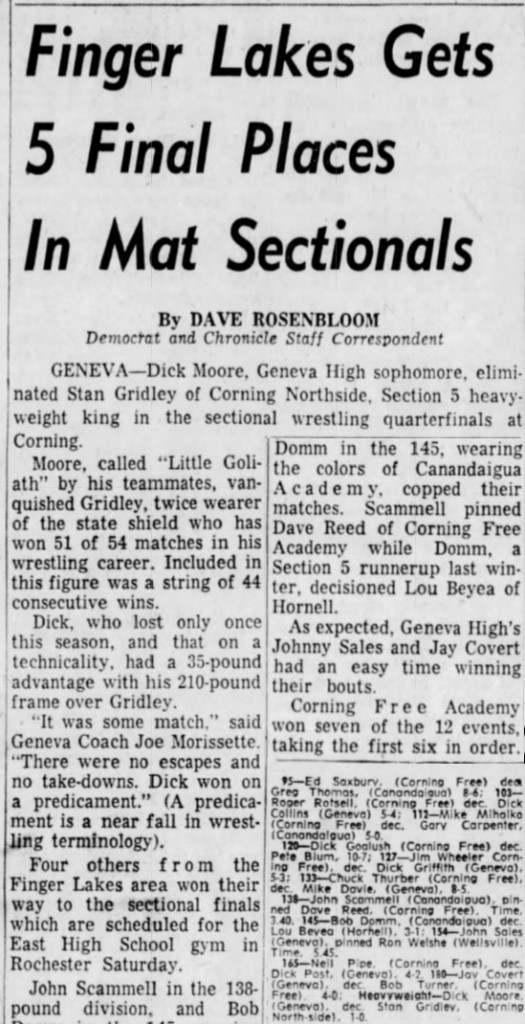 Robert Domm (Canandaigua) > Lew Beyea (Hornell) decision 3-1