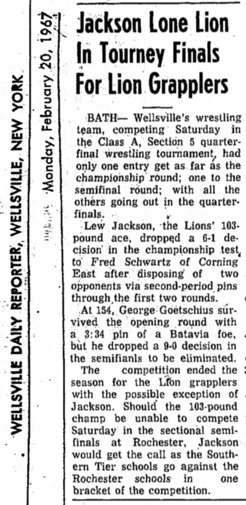 Tom Andrews (CE) > Dick LeBar (Dansville) referee's decision