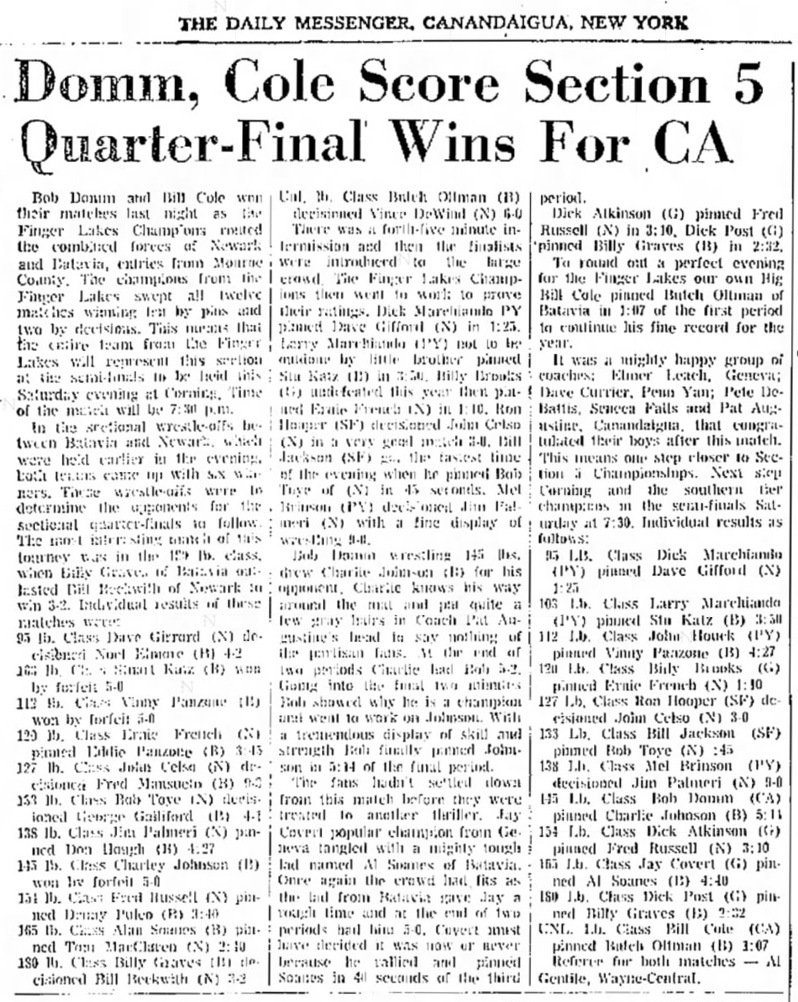 Bill Cole (Canandaigua) > Marlin Oltman (Batavia) fall 1:07