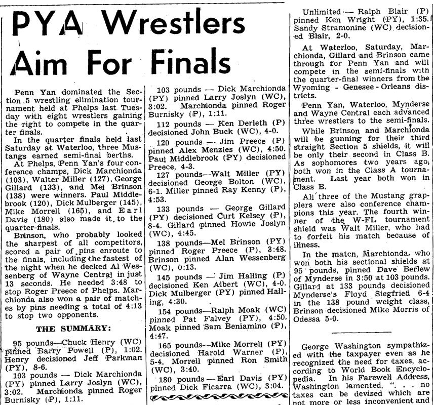 Walt Miller (PY) > Raymond Kenny (Phelps) fall 4:53