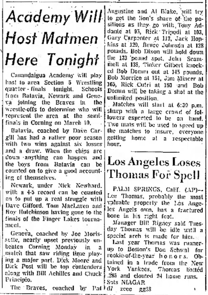Bob Morrice (Canandaigua) > Len Walton (Batavia) decision 6-0