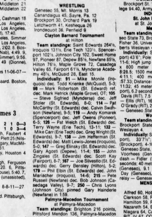 Steve Siegfried (Mynderse) > Jeff Stoler (SE) major decision 8-0