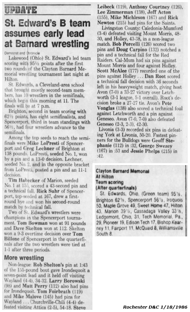 Greg Lechner (Brighton) > Mike LoPresti (Spencerport) decision 2-1