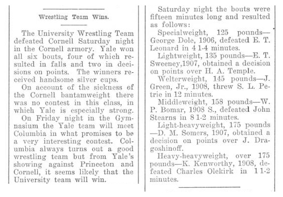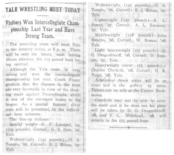 125 George Dole (YU) > E.P. Leonard (CU) fall 4:09