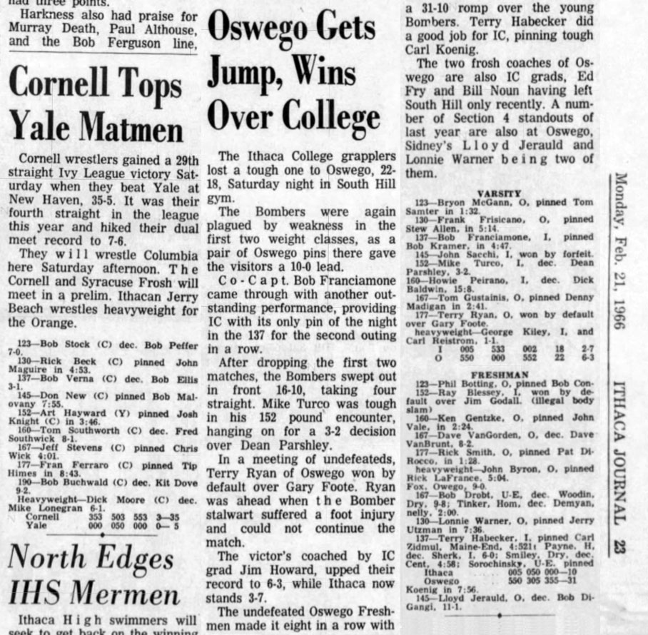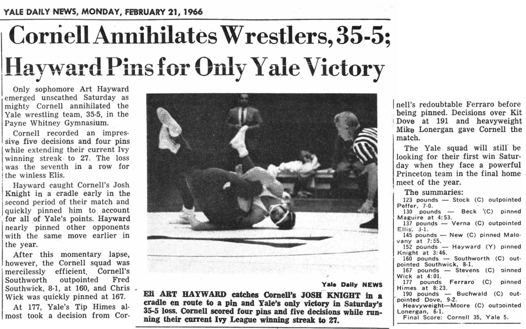 Don New (CU) > Bob Malovany (YU) fall 7:55