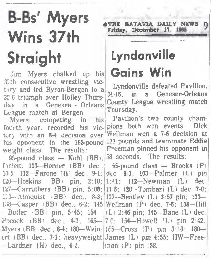 Kevin Brooks (Pavilion) > Ron Dingler (Lyndonville) decision 6-3