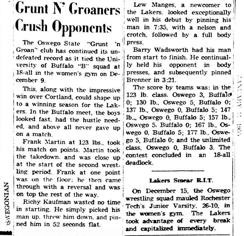 SUNY Oswego 18, University at Buffalo (JV) 18