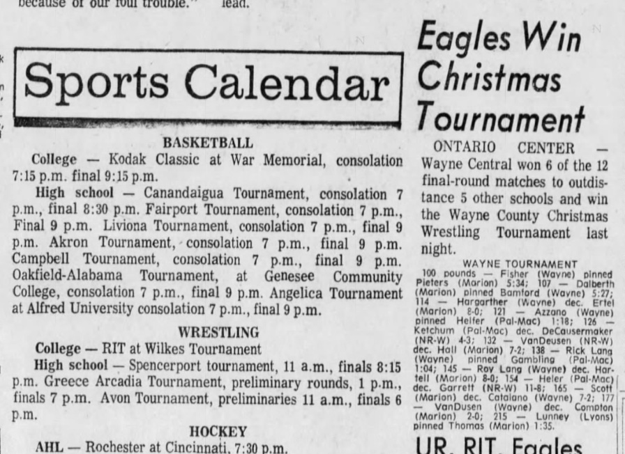 Steve Dalberth (Marion) > Larry Bamford (Wayne) fall 5:27