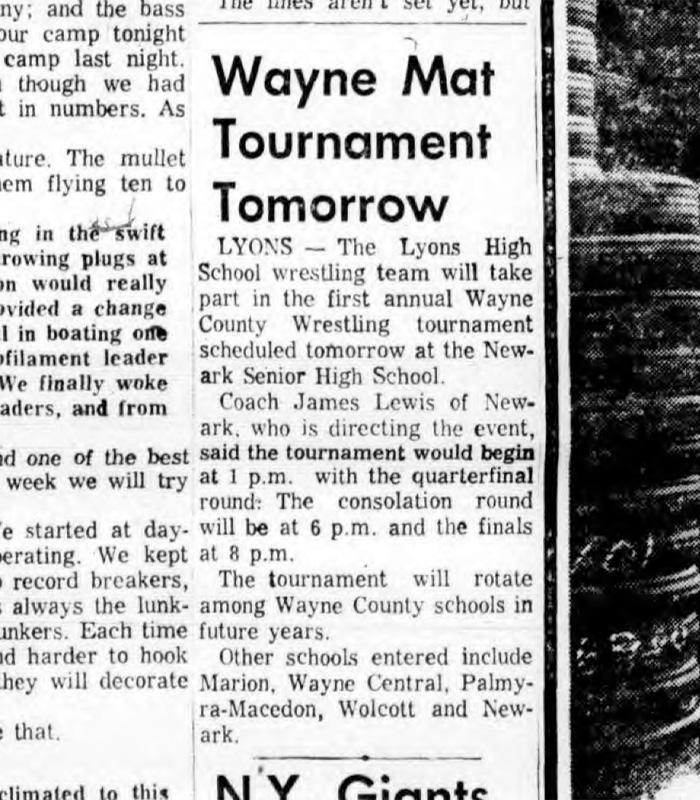 Wayne [NY] 102, Marion [NY] 95, Lyons [NY] 87, Newark [NY] 72, Palmyra-Macedon [NY] 69, North Rose-Wolcott [NY] 61