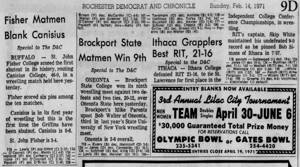 Pete Schmidt (Brockport) > Tom King (Oneonta) decision 27-6