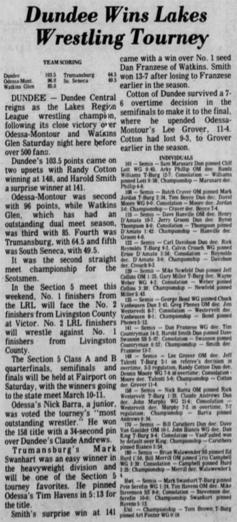 Dundee [NY] 103.5, Odessa-Montour [NY] 96, Watkins Glen [NY] 85, Trumansburg [NY] 64.5, South Seneca [NY] 49.5