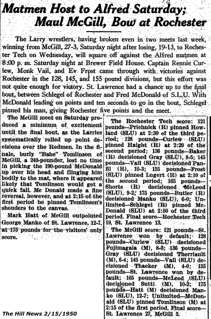 Bill Schlegel (RIT) > Fred MacDonald (SLU) fall 8:49