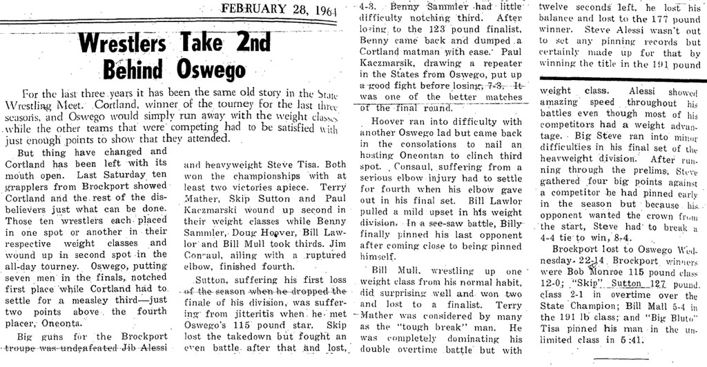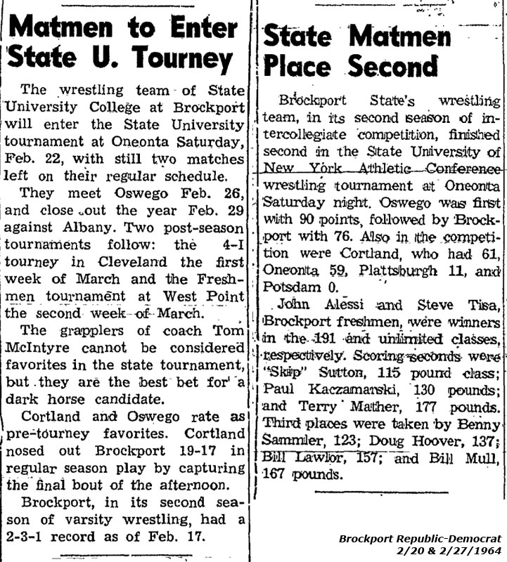Jerry LaMonica (Oswego) > Skip Sutton (Brockport) decision 4-2