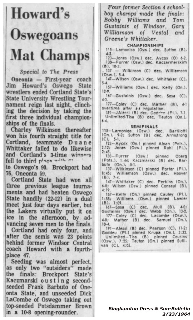 Dick Samuel (Oneonta) > Dick LaCombe (Oswego) decision 3-1