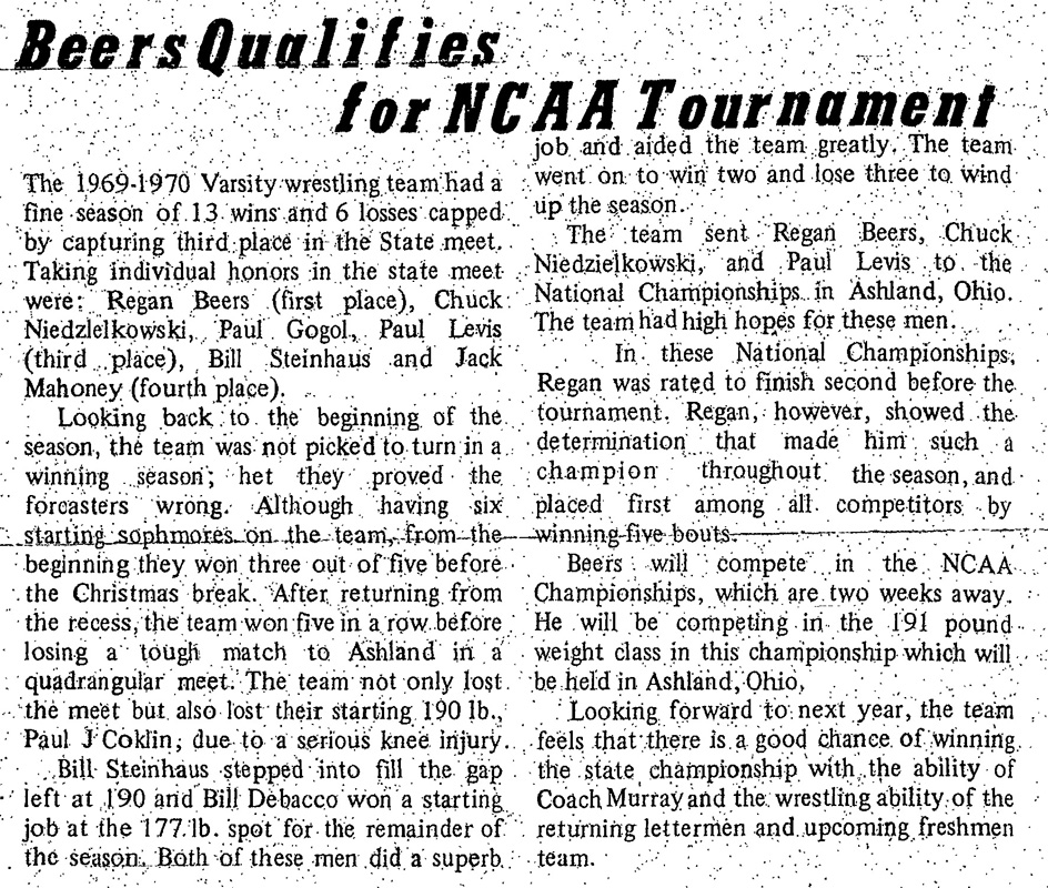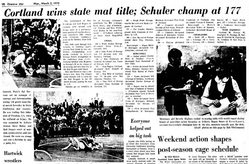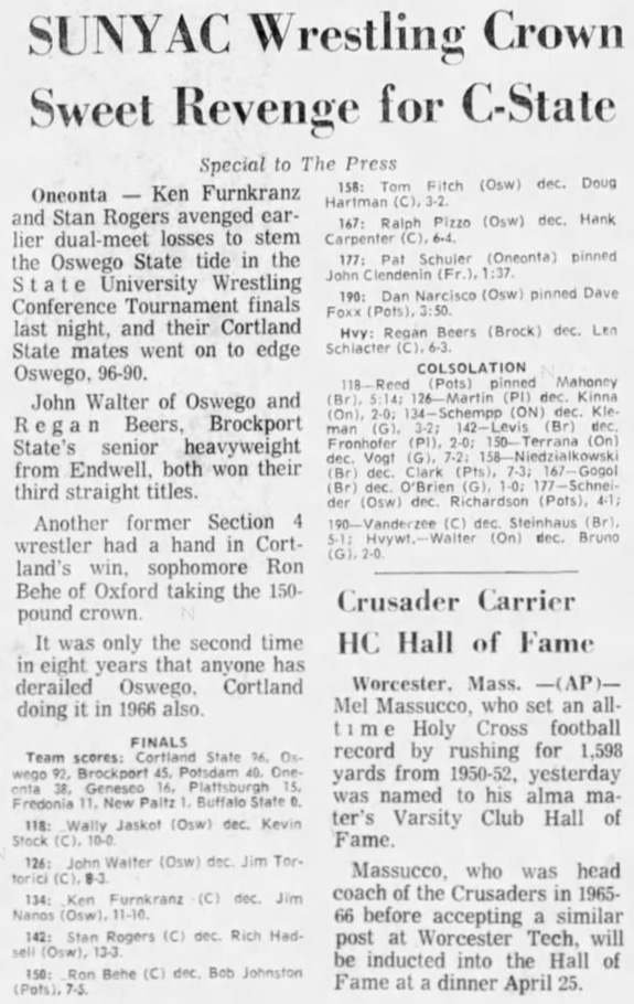 Stan Rogers (Cortland) > Dick Hadsell (Oswego) decision 13-3