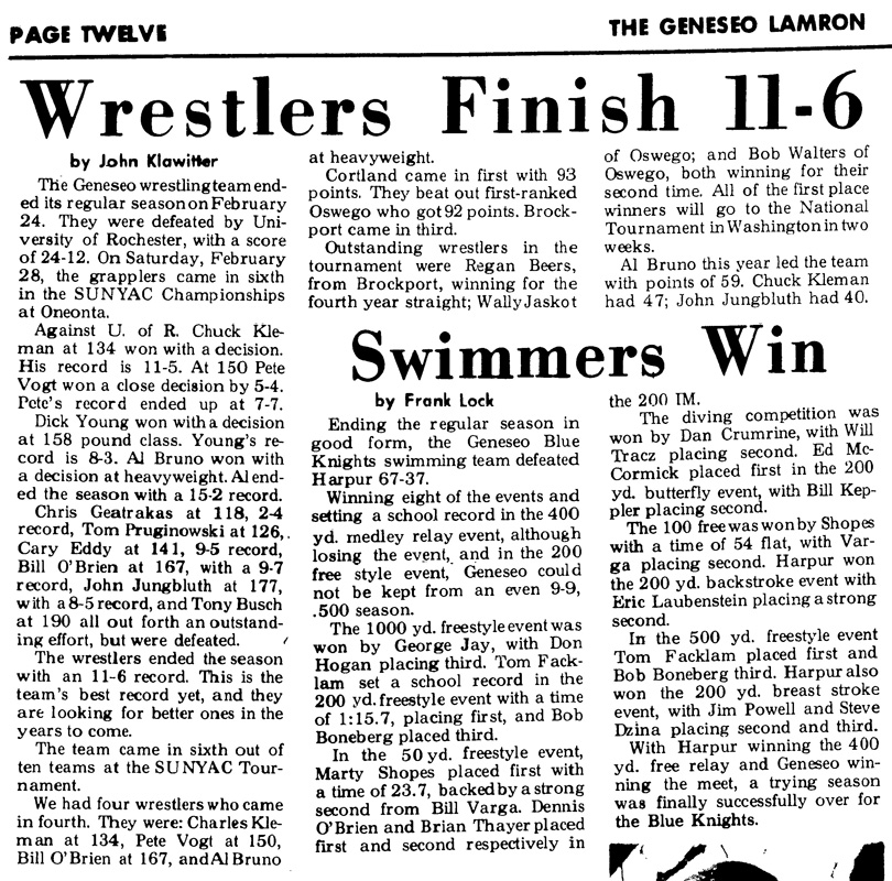 Bill Schempp (Oneonta) > Charles Kleman (Geneseo) decision 3-2