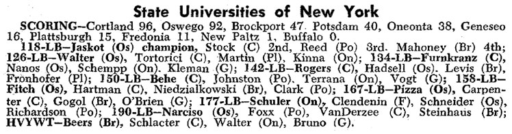 Ralph Pizzo (Oswego) > Hank Carpenter (Cortland) decision 6-4