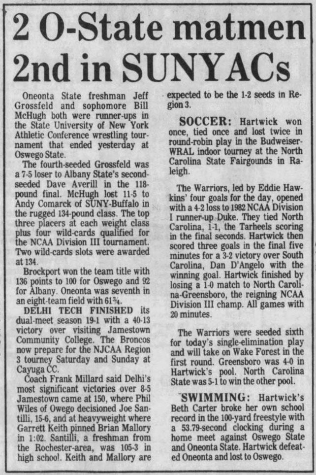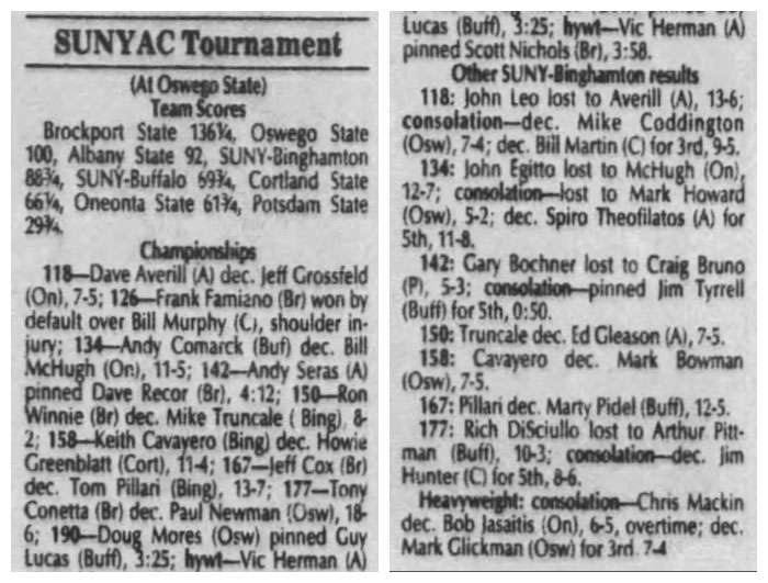 167 Marty Pidel (UB) > Tom Stanbro (Oswego) decision 7-6