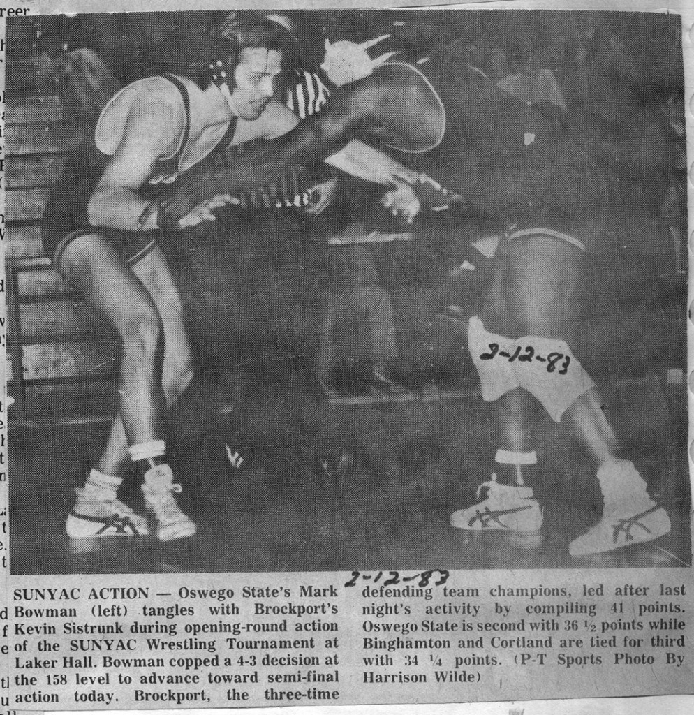 158 Mark Bowman (Oswego) > Kevin Sistrunk (Brockport) decision 5-4