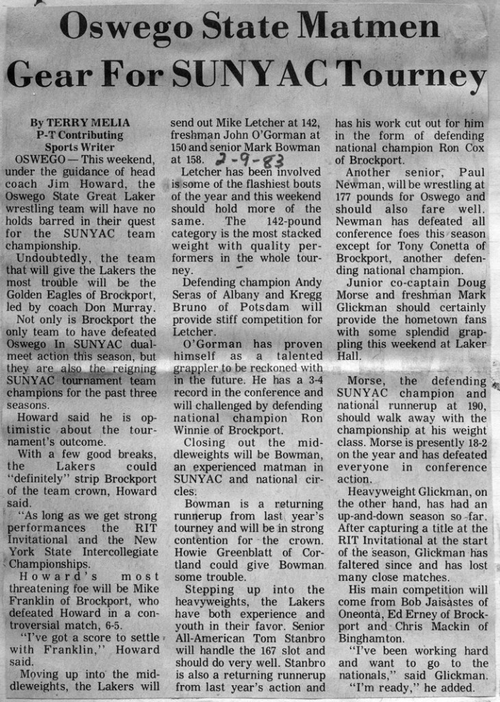 142 Mike Letcher (Oswego) > Kregg Bruno (Potsdam) fall 2:50