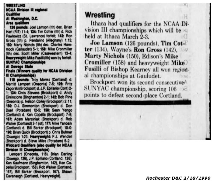P.J. Wendel (Brockport) > Steve Miles (Potsdam) decision 5-2
