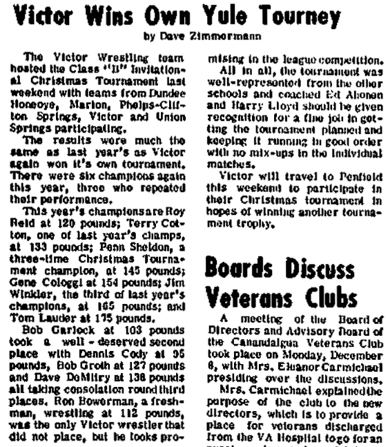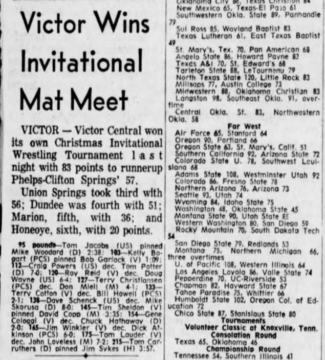 Jim Winkler (Victor) > Dick Atkinson (Midlakes (Phelps-Clifton Springs)) decision 6-0