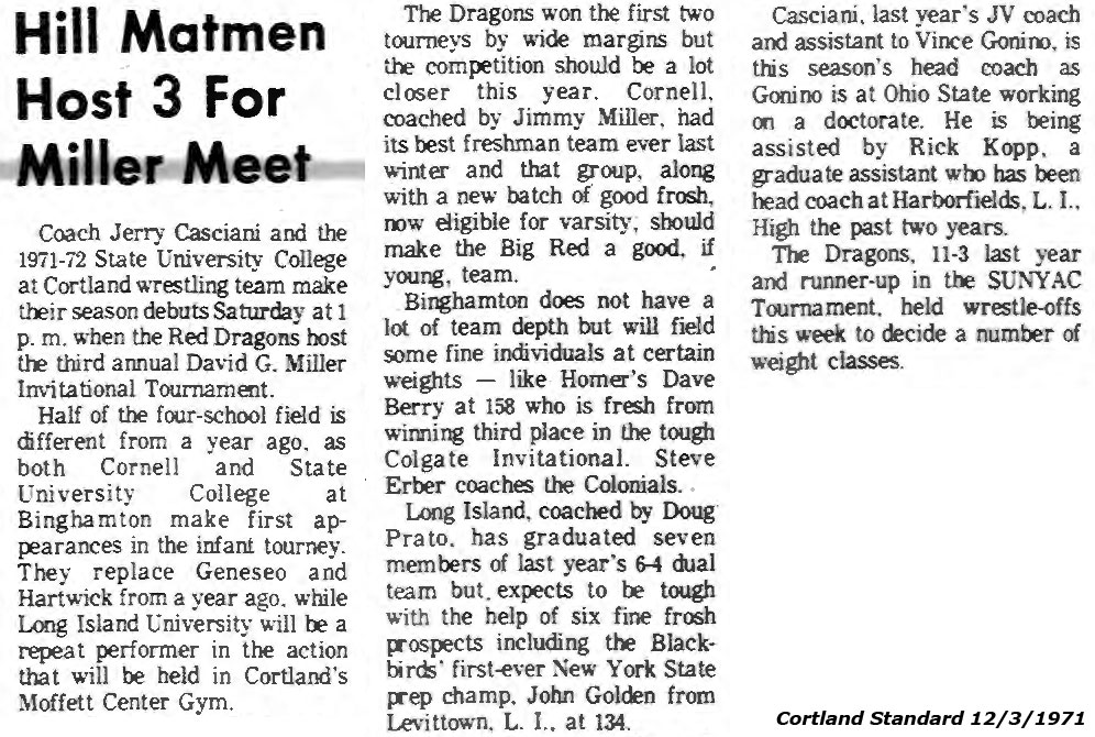 Walt Grote (CU) > Bill Lett (Cortland) decision 6-4