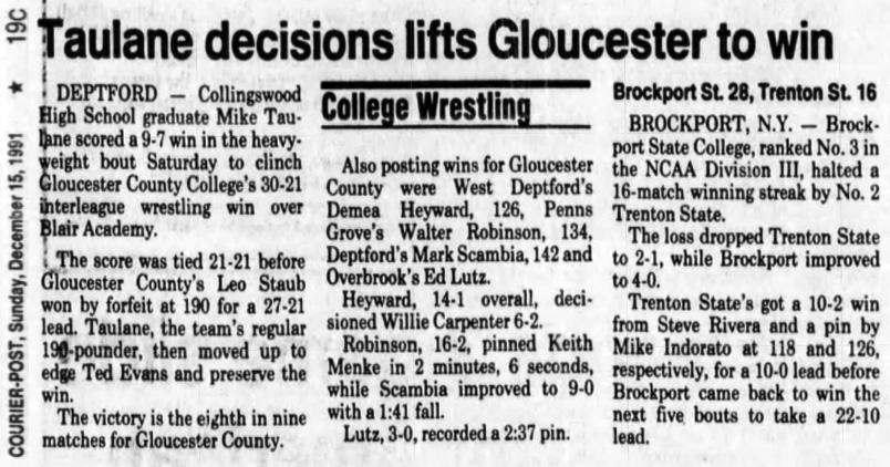 Brian Quick (Brockport) > Glen Sandull (TCNJ (Trenton State)) decision 7-4