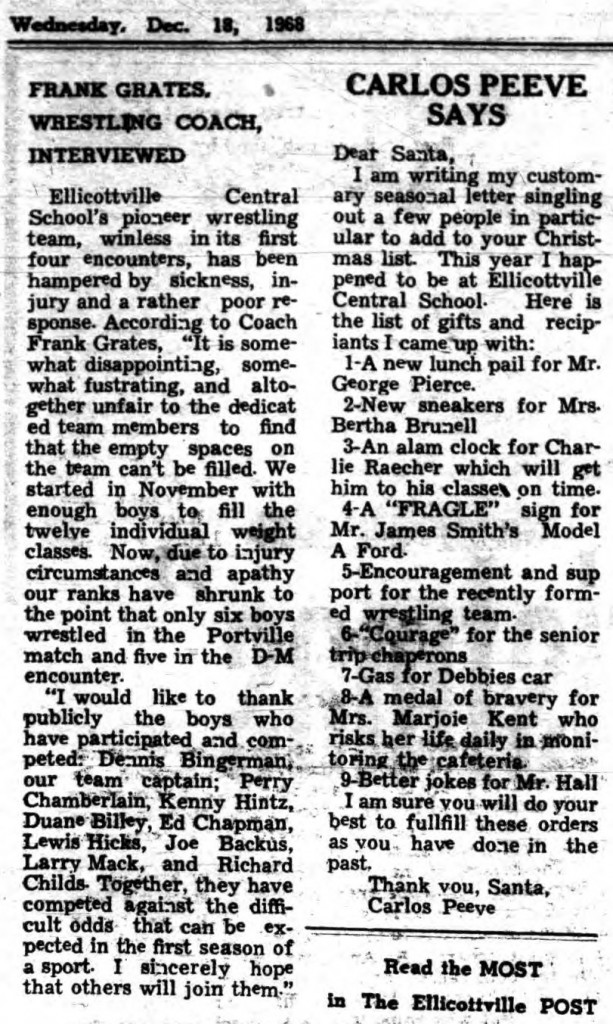 4th Annual Cattaraugus County League Holiday Wrestling Tournament — Franklinville, NY