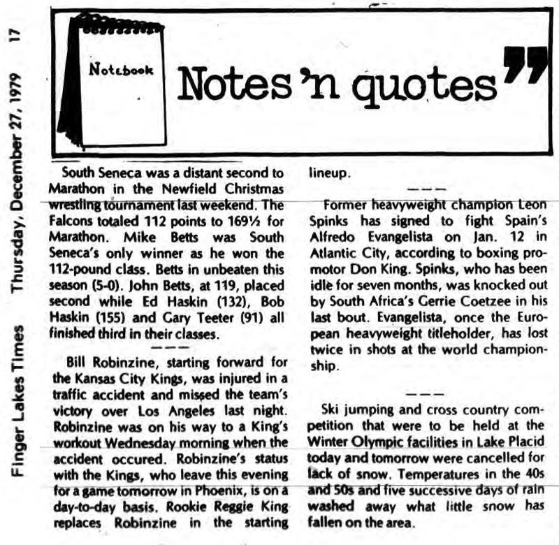 Don Elsenheimer (Marathon) > Winton Williams (Newfield) decision 9-8