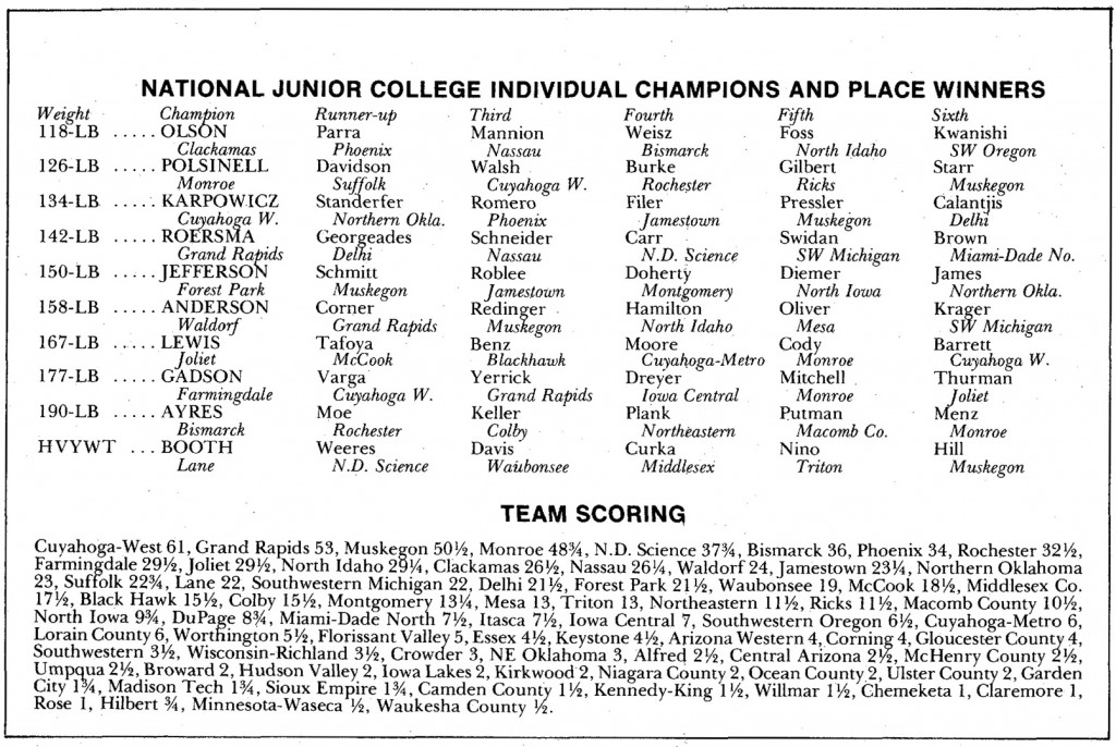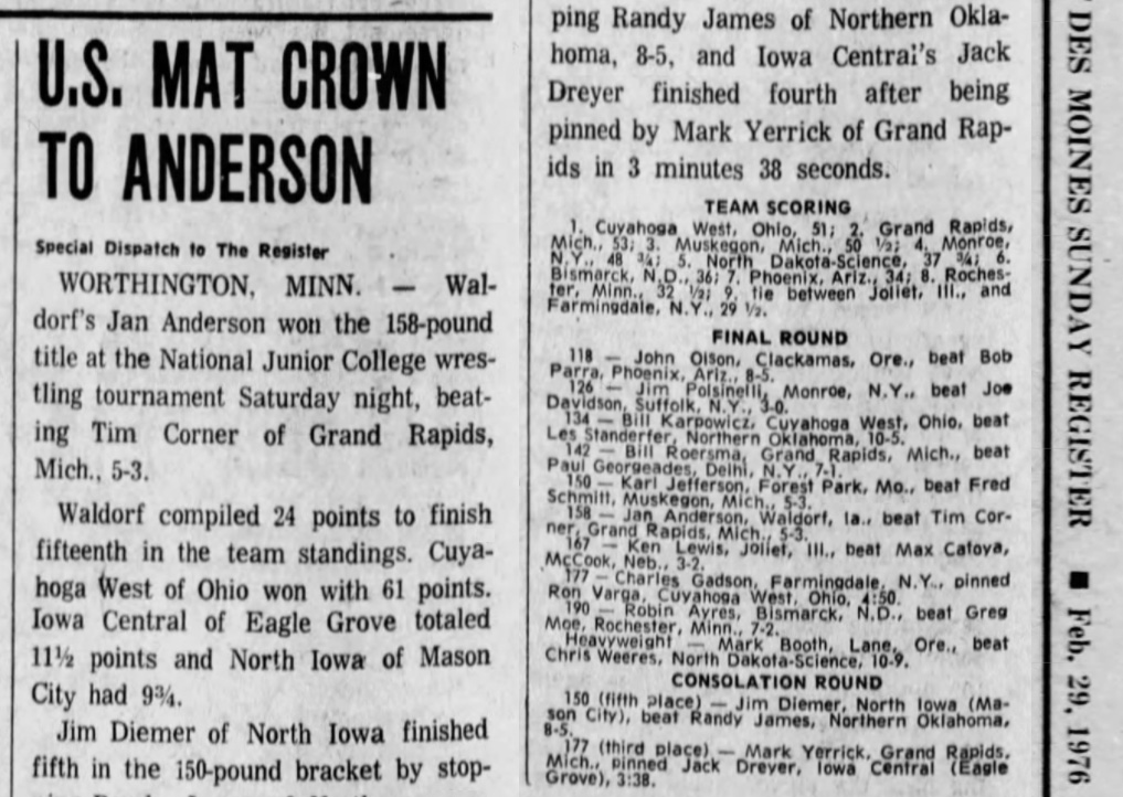 Mark Yerrick (GRCC) > Jack Dreyer (ICCC) fall 3:38