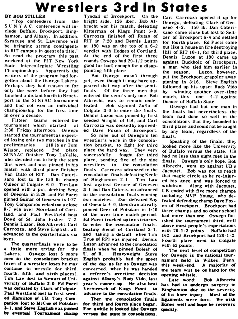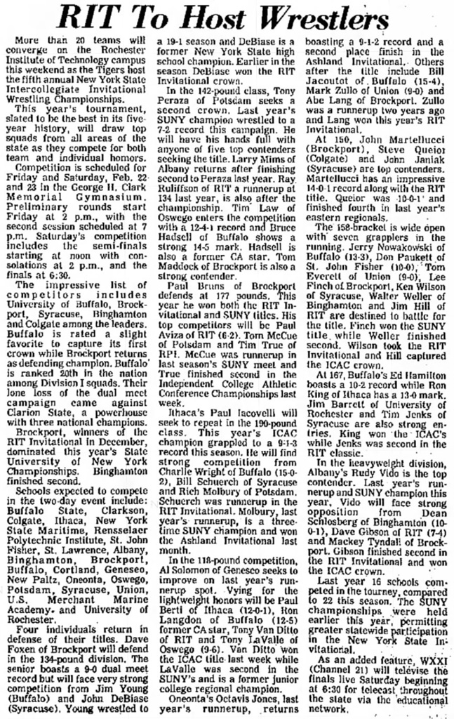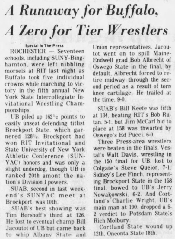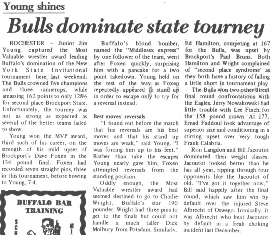 Jim Young (UB) > Dave Foxen (Brockport) decision 7-4