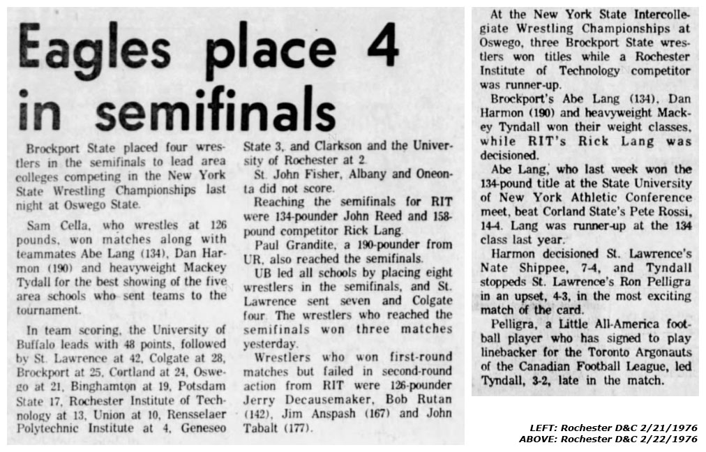 Mackey Tyndall (Brockport) > Ron Pelligra (SLU) decision 4-3