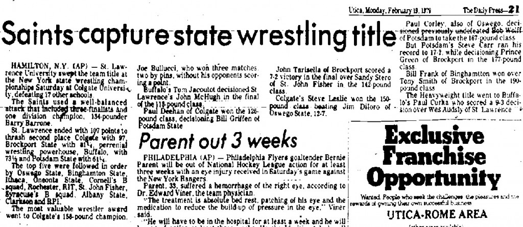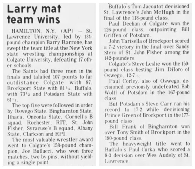 Bob Carbo (Oswego) > Kevin Richard (Brockport) decision 10-6