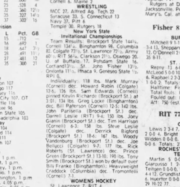 John Parisella (Brockport) > Darrell Leslie (RIT) decision 9-4