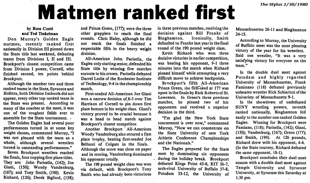Woody Vandenburg (Brockport) > Joe Bellucci (CU) decision 9-7
