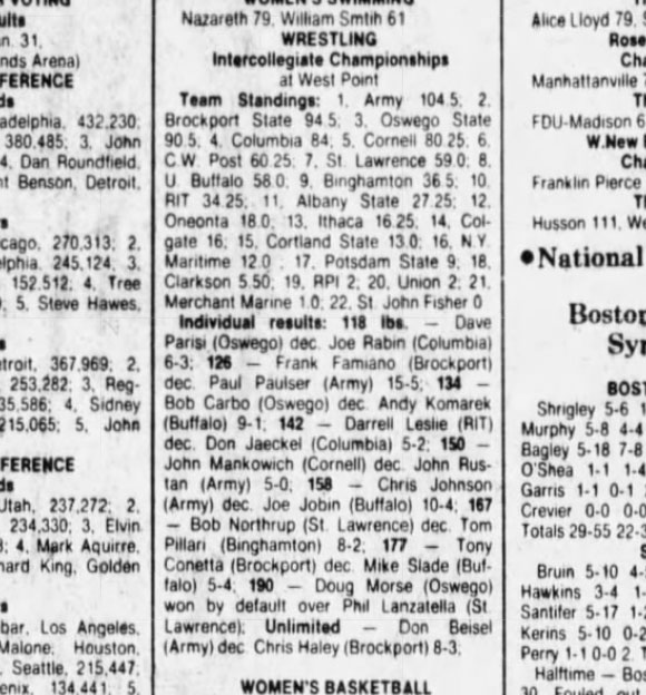 David Parisi (Oswego) > Joe Rabin (CU) decision 6-3