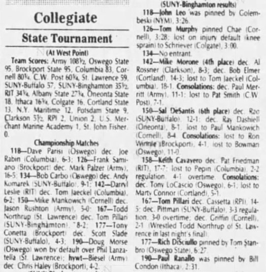 Frank Famiano (Brockport) > Mark Palzer (USMA) decision 16-5