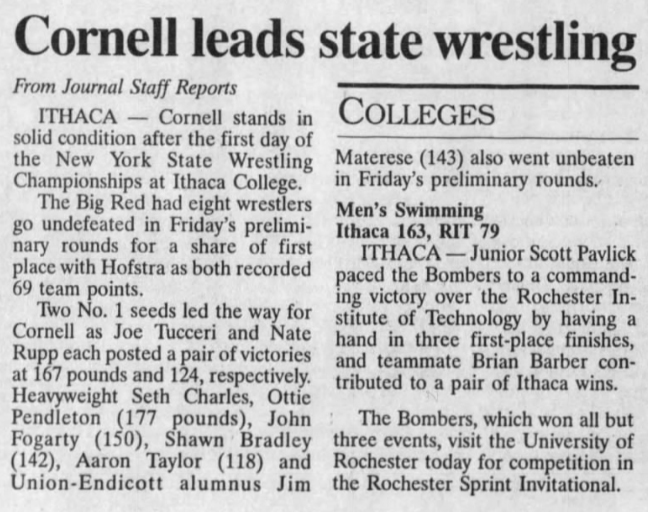 John Strong (IC) > Steve Jones (Cortland) fall 2:19