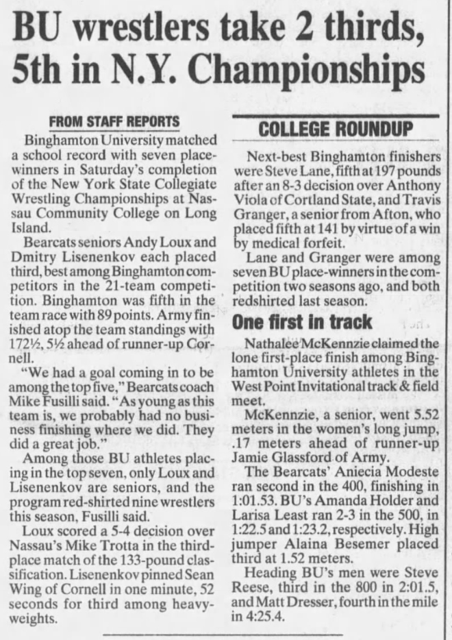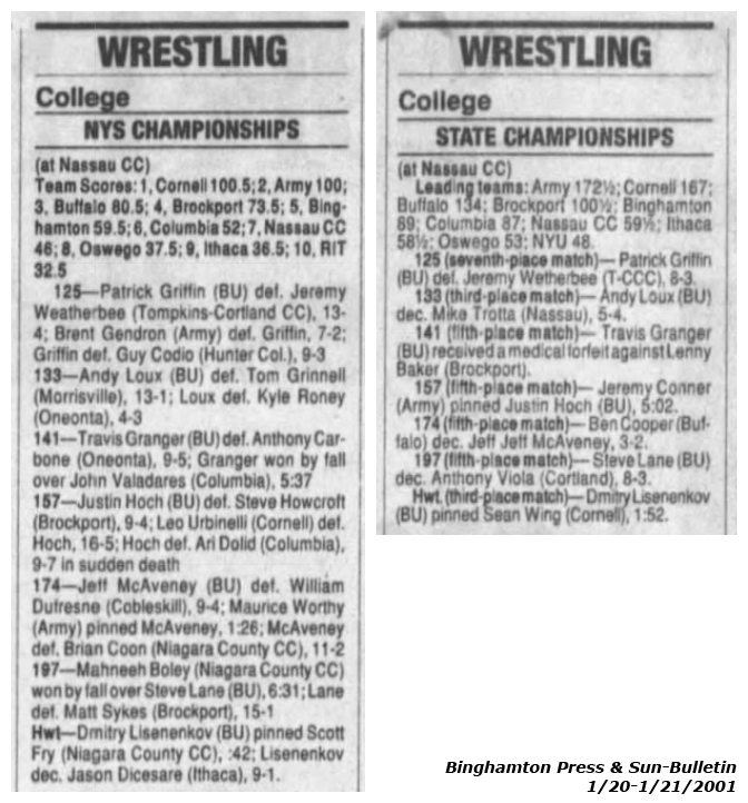 Travis Granger (BU) > Lenny Baker (Brockport) forfeit