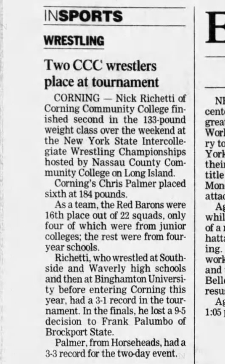 Frank Palumbo (Brockport) > Nick Richetti (CCC) decision 9-4