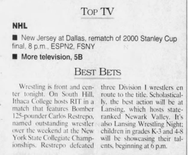 Matt Leschiavo (RIT) > Kevin Hines (HC) fall 3:30