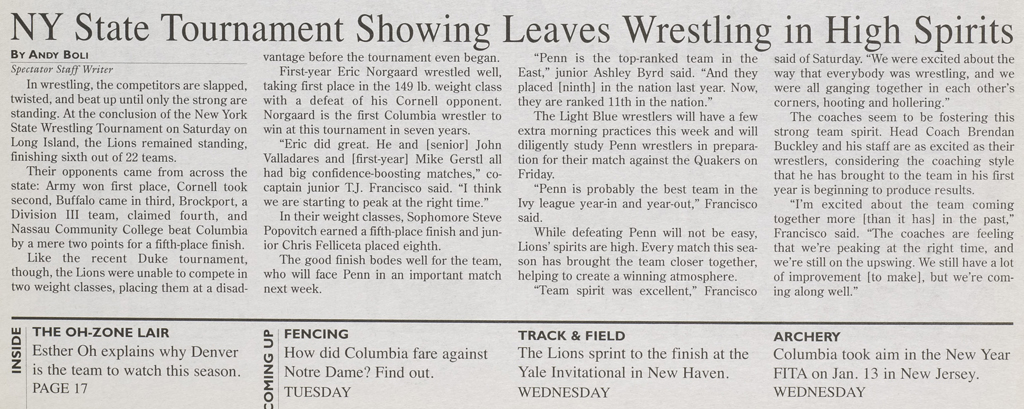 Steve Lane (BU) > Anthony Viola (Cortland) decision 8-3