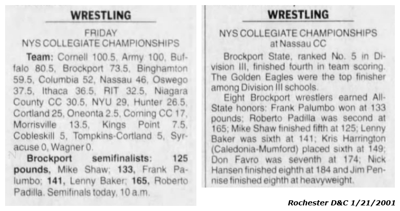 Mike Shaw (Brockport) > Rubin Prophete (Oneonta) decision 8-4