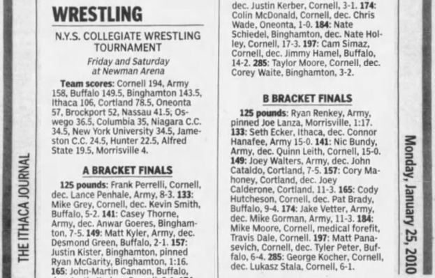Will Brodfuehrer (Cortland) > Derek Brenon (IC) forfeit