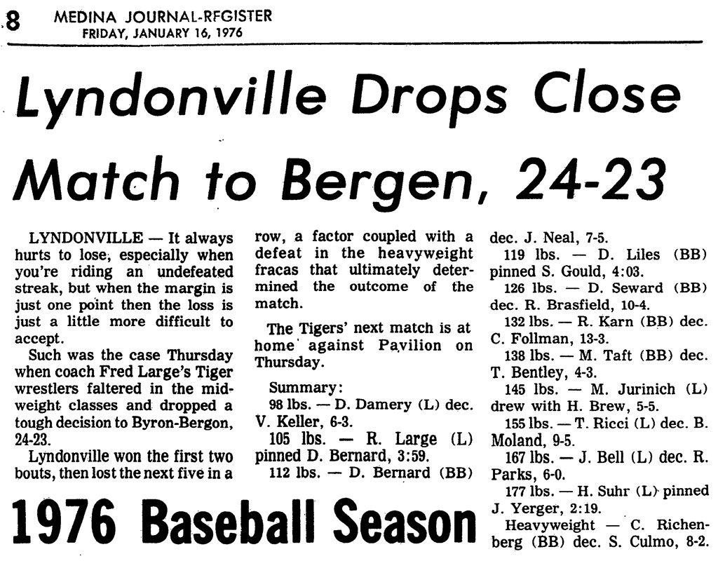 Ron Large (Lyndonville) > Doug Bernard (BB) fall 3:59
