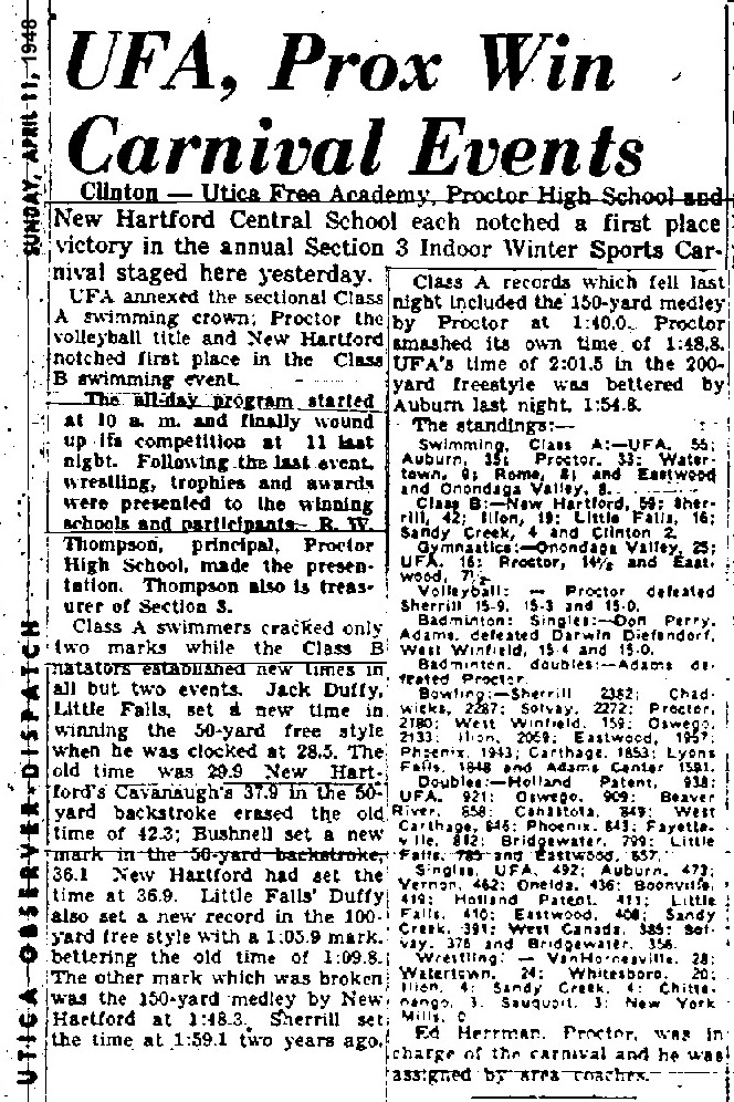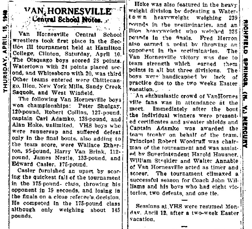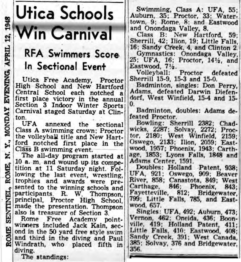 Van Hornesville [NY] 28, Watertown [NY] 24, Whitesboro [NY] 20, Ilion [NY] 4, Sandy Creek [NY] 4, Chittenango [NY] 3, Sauquoit Valley [NY] 3,