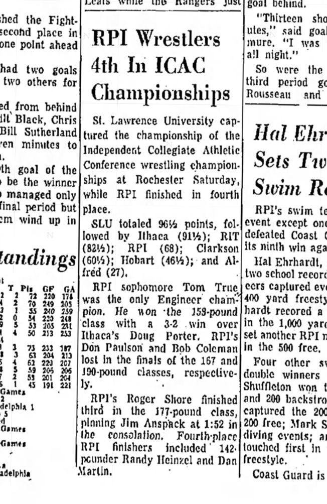 Tim True (RPI) > Doug Porter (IC) decision 3-2