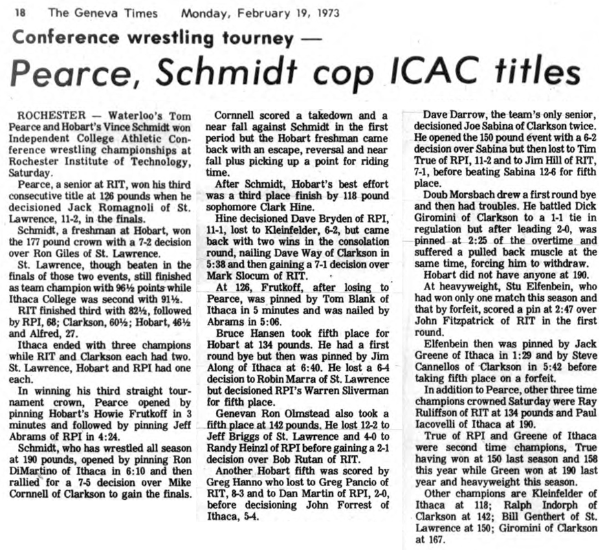 Clark Hine (HC) > Mark Slocum (RIT) decision 7-1